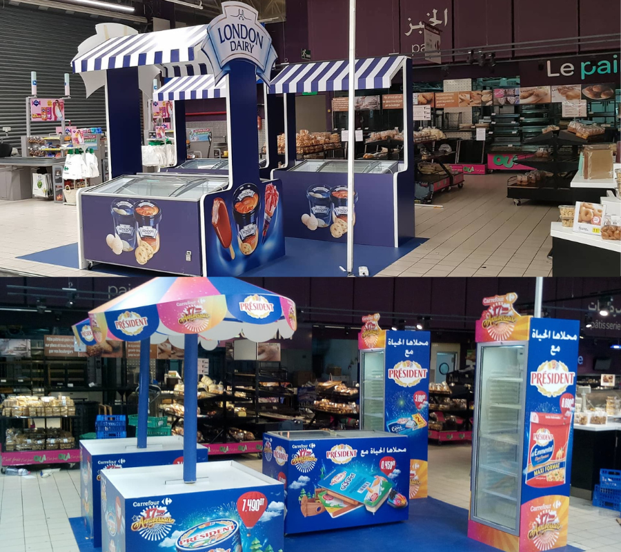 Au profit de plusieurs marques qu’on trouve dans les supermarchés, l’équipe Design Store leur consacre son savoir-faire pour faire briller leur image et assurer la promotion de leurs nouveaux produits.
